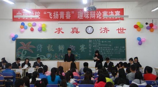 为推广校园文化建设,增强校园学习气氛,展现我院风采。5月18日上午9时,由中药学院学工办主办,中药学院学生会学习部承办的中药学院“飞扬青春”趣味辩论赛决赛在医学楼223大教室举行。中药学院临床中药辅导员祁晓鸣、制药工程辅导员孟祥龙、中药学院学生会主席刘梦楠、副主席徐东东、办公室主任孙野、生活部部长周晓荣受邀担任评委。中药学院2013级学生到场参加。