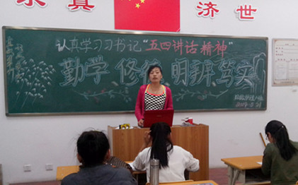 为了深入学习习近平总书记五四青年节在北大的重要讲话精神,积极引导班级同学们树立正确的世界观、人生观和价值观,2014年5月21日晚8时,12级护理1班全体同学在护理大楼202教室召开了“认真学习习近平总书记‘五•四’重要讲话精神”主题团日活动。此次团日活动由团支书任倩雯主持,辅导员王宇飞特此观摩此次主题班会。