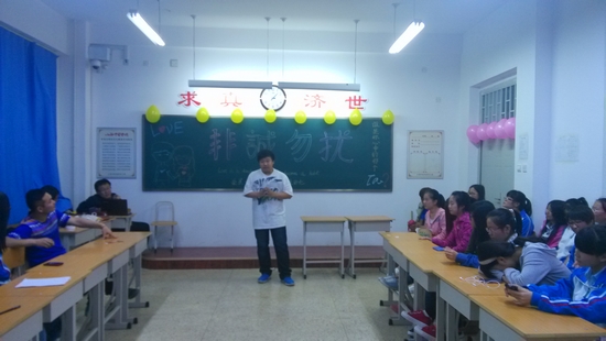 为了使同学们明确正确的爱情观和价值观,让同学们更好地在爱情面前做出选择,5月15日,2013级药学1班于新校区医学楼220教室开展了以“非诚勿扰 ”为主题的班会。班会由张宸睿主持。