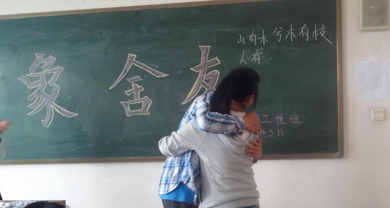活动过程中欢声笑语,乐此不疲,有些同学很幸运地猜出了那位同学并很羞涩地与之拥抱,这恰恰反映了同学们的彼此熟悉程度,有些同学没有猜出了,选择了体罚,经过这样的教训,也对那位没有猜出的同学有了新的认识与印象。