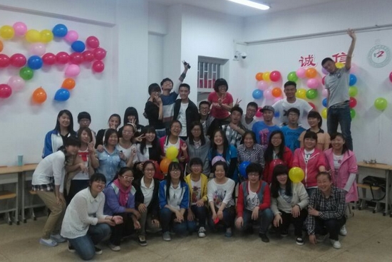 此次班会以主持人的一段爱情诗作为结束语,同时进行了拍照留念。