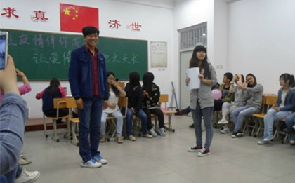 最后一个环节是互动环节,每位同学拿出一张纸,写出心目中自己和自己的男友或女友发生的最浪漫的场景或事情,不用署名。然后由主持人收齐,并随机抽出一张,再从女同学中随机抽出一人,男同学中抽出一人进行现场表演。