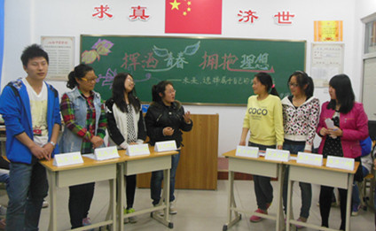 为增强当代大学生的社会危机感,激发同学们的行动力,并以积极健康的心态规划生活,成就美好未来,2014年5月11日晚8时,12级护理4班全体同学在新校区护理大楼208教室召开以“挥洒青春,拥抱理想——未来,选择属于自己的大学生活”为主题的心理主题班会。班会由心理委员鲁秀秋主持。辅导员燕鹏老师参加了此次班会。