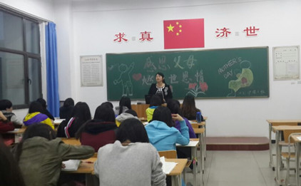 班会伊始,黄德清向同学们介绍了此次班会的内容与目的。她说,此次班会的开展是让同学们学会怎样去感恩父母以及身边的人。紧接着,她放映了一段关于留守老母亲支持儿子创业,最后意外去世的真实视频,让同学们深刻体会到要好好珍惜与父母相处的时间,切莫等到“子欲养而亲不待”的时候才知道后悔。然后,同学们就此班会发表了自己的看法。其中,郭佳同学深情地演唱了一首《烛光里的妈妈》让同学们沉浸在优美的歌声之余也陷入了深深的思考中。随后,班会进入“我问你答”有奖抢答环节,同学们在积极抢答、沉着应答的过程中再次对本次班会的主题有了更加深入的了解。最后,班会在一段母爱无边的沙画音频中结束。