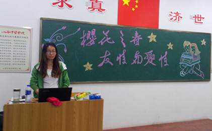为了促进同学们的身心健康发展,愉悦地度过大学生活,2014年5月8日晚7点30分,13级护理1班全体同学在护理大楼409教室举办“樱花之春,友情与爱情”的主题班会。班会由王丽婷同学主持,全体同学参加。