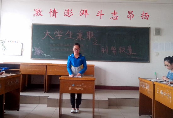 5月9日,2012级中药实验班在2706教室举办“大学生兼职之利弊较量”主题班会。本次班会旨在引导学生树立正确的兼职观念,引发学生对兼职现象的深度思考,自主衡量兼职带来的利与弊。