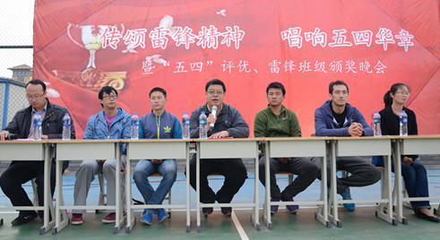 为弘扬雷锋乐于奉献、全心全意为人民服务的高尚品质,引导大学生做新一代的五四爱国主义青年,2014年5月6日晚6时,护理学院于新校区篮球场举办的“传颂雷锋精神,唱响五四华章”暨“五四”评优、雷锋班级颁奖晚会隆重举行。护理学院党总支书记赵殿龙书记,护理学院分团委、学工办负责人姜弢老师,招就处高贺老师,护理学院燕鹏老师、王宇飞老师、鹿云老师、吴超老师出席本次晚会。