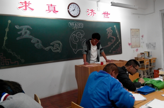 为了促进青年大学生继承和发扬五四精神,贯彻领悟五四精神的内涵,同时增强对国家的担当意识,5月4日晚8时,中药学院2013级药学2班在新校区医学楼221教室举办了以“五四·爱国”为主题的班会,本次班会由文艺委员成吕和组织委员薛文娟主持。