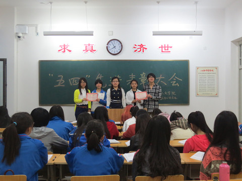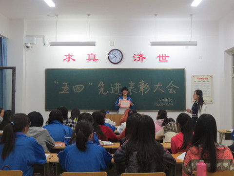 “五四”临近,为了奖励优秀的同学,同时激励其他同学,人文学院于2014年4月29日晚7时30分在医学楼408教室召开了2014年“五四”先进表彰大会。与会人员有人文学院全体同学及辅导员刘潇荃老师。大会主持人是团支书蒋一帆同学。