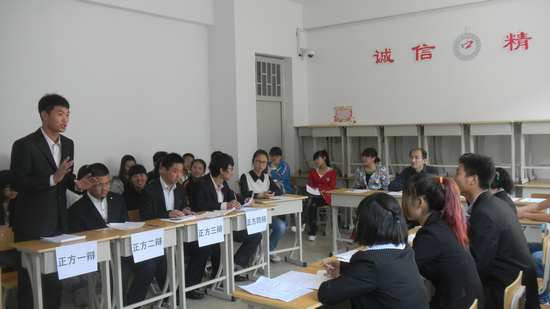 比赛过程相当精彩,可谓是跌宕起伏,立论陈词有根有据,明确点出了己方观点并举例佐证。自由辩论阶段,正反双方选手唇枪舌战,针锋相对。另外,出乎意料的情景剧表演部分,给紧张激烈的辩论赛增加了一抹亮丽的风彩。经过激烈的角逐和评委公开、公正、公平的评定,两队选手获得进入决赛的门票。