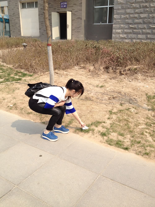 下午,在班长和团组织的带领下,全班同学根据团小组而分别到达指定区域,比如寝室楼,食堂,操场,教学楼等地捡垃圾,同时呼吁校园的同学爱护树木,不要践踏草坪,全部同学展示了大学生的风采,积极踊跃参加,出色地完成了任务,使活动顺利的进行。