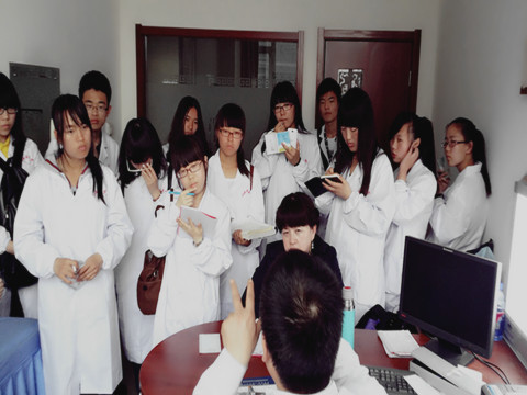 当天下午2时30分,身穿白大褂的同学们乘坐校车从新校区前往我校的附属医院,途中同学们兴致高昂,满怀期望。到达之后,同学们分为3组,分别前往不同科室见习。