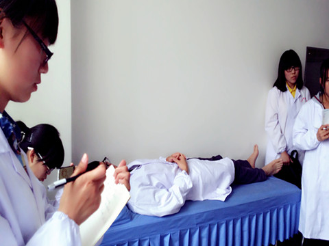 见习过程中,同学们谦逊好问,认真听讲,并及时记下所闻所学。而那些医师们也和蔼可亲,毫无保留地耐心教授,尤其是脑科的张医师,他不仅教会了同学们识别CT图的技巧,还选取了一名同学做示范,让同学们亲眼见识到一般检查诊断的过程。