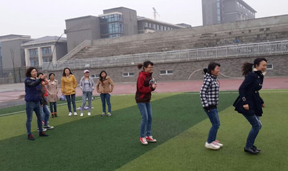 活动开展之前,邓心仪向同学们介绍了此次活动主要是由“贴膏药”和“跳绳”两个环节组成。准备好之后,同学们被分为两大组进行活动、比赛。在“贴膏药”环节中,男生们的实力不容小觑,他们不仅跑的快,而且很灵活;女生们则“穷追不舍”,但最后还是男赢女输。女生们为了给自己挽回面子,在随后的跳绳活动尽显“巾帼不让须眉”的英雄本色,她们跳姿轻盈但却不失稳健。比赛之后,女生们纷纷表示如果以后有时间一定会多参加体育锻炼或户外运动,增强自身体质。最后,辅导员樊建楠老师对此次团日活动进行了点评,她表示此次活动开展目的在于减轻学生们对网络的依赖性,丰富同学们的体育生活,增强同学们的身体素质,只有这样才能在锻炼中磨练坚强的意志,实现我们奋斗的“梦”。
