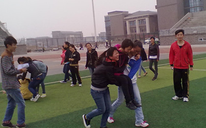 班会伊始,支持人介绍活动规则,将全班同学分为六组进行四环节游戏比拼,游戏采取积分制原则,积分最多组获胜。首先,作为此次班会体育锻炼预热项目的“足球射门”游戏开始,同学们兴趣高涨,踊跃参与,将班会气氛迅速提升。紧接着,在“绑腿赛跑”的游戏中,队员们积极做好统一步调的赛前准备,同时又采用稳中求进、大步跃进等不同战术,比赛竞争愈发激烈,高潮不断,将同学们的团队协作精神表现得淋漓尽致。班会活动继续进行,接下来的“运人游戏”依据护理搬运的专业知识,发挥学院优势,在游戏过程中巩固了知识,宣传了健康运动,安全运动的理念。最后,同学们在百米赛跑中冲刺接力,挑战刺激。伴随着同学们的欢声笑语,班会圆满结束。此次班会活动过程以体育运动游戏贯穿始终,丰富的活动样式增强了班会的趣昧性,更加调动了同学们参加体育锻炼的积极性。