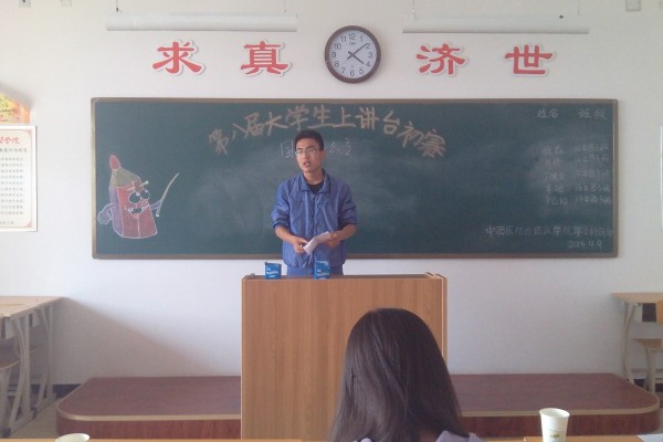 “大学生上讲台”活动作为本学院的特色活动,旨在锻炼学生的授课能力,临场发挥能力等各方面能力,同时也为广大学生提供了施展才华和学习的平台。初赛以题材、内容、风格不限,每人限时3分钟的方式展开。每个参赛队员都充分利用属于自己的3分钟,采取板书、互动等讲解方式表现出自己独特的风格,使其话题更加形象、生动。话题取材各异,涵盖经济、政治、文化、历史及各个具体学科等方面。