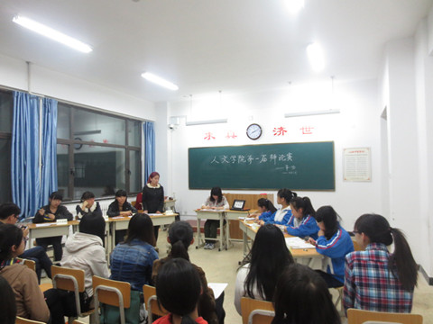 为了使同学们口才更加伶俐,思维更加灵活,人文学院于2014年4月3日星期四晚7时30分在医学楼408室召开了第一届第一场辩论赛。辩论赛由班长李雅超主持。