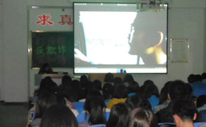 为了提高同学们的安全防范意识,增强明辨是非的能力,2014年4月1日晚7点30分,护理学院组织全体学生在新校区护理大楼1至6教室观看影片《黑梦》。