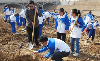 活动前期,同学们准时到达集合地点,统一领取了铁锹、铁镐等工具。在常佳婧老师的带领下,同学们学习了种树过程中工具使用的安全问题以及相关注意事项。随后,大家一起迈着整齐的步伐前往植树地点。自此,植树活动正式开始,大家三人一组,有秩序的按分配场地投入到植树活动中,各组成员齐心协力、配合默契,不怕苦、不怕累的精神在他们身上得到了充分地体现。阳光明媚,天空见证了他们辛勤劳作的身影;惠风和畅,微风吹拂着他们的汗水;其乐融融,大地感触到他们欢乐的笑容。活动结束后,大家整齐有序地返回,并将各自工具放回指定地点,本次植树活动到此顺利落下了帷幕。