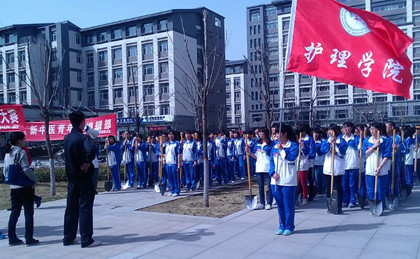 春天的脚步渐渐迈进,花香鸟语缠绕弥漫于温暖的空气中,为了迎接春的来临,美化校园环境,提高学生的绿化意识,进一步增强学生团结协作的精神,护理学院于2014年3月28日下午两点半组织开展了植树活动。护理学院党总支书记赵殿龙,辅导员常佳婧、燕鹏、鹿云及护理学院200余同学参加了本次活动。