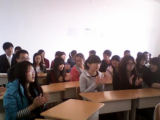 班会分为三个环节,首先是“大画墙展”,在优美的音乐声中,同学们娓娓道来,得出了成功在于强悍的装备,强大的克制力,恰好的机遇和良好的人际关系等。第二个环节是“回归平凡”,由为班里取得荣誉的同学发言,讲述她们成功的经验,孟老师也就“大学生如何度过大学生活”这个问题提出了一些建议,得到同学们的一致认可。最后,是“班级规划”环节,同学们踊跃发言,阐述了自己的观点,为班级建设提出了宝贵意见。班会在”相信我们会创造奇迹“的优美歌声中宣告结束。