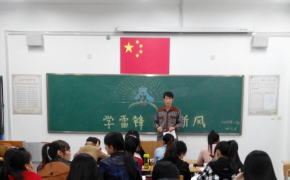 为积极响应学院开展的“弘扬雷锋精神,倡树文明新风”为主题的团日活动,同时也为了使同学们理解雷锋精神的真实内涵,准确把握雷锋精神的时代意义,弘扬雷锋精神,将雷锋精神作为指引我们学习和工作的前进方向,11级护理2班于3月16日晚7:00—9:00在202教室展开以“学雷锋,树新风”为主题的班会活动,此次班会由武星杰同学主持。