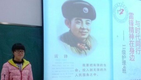 为不断提升广大青年团员的思想道德品质,发挥青年团员学雷锋的骨干作用,传承和弘扬雷锋精神,普及“奉献、友爱、互助、进步”的志愿服务理念,11级护理4班全体同学于3月11日晚在护理大楼306教室开展了 “与时代同行,雷锋精神在身边”主题团日活动,旨在通过集体学习与交流让同学们深刻体会并践行“服务社会、助人为乐、锐意进取、自强不息”的雷锋精神,创建美丽的“雷锋”校园。本次班会由张丽同学主持。