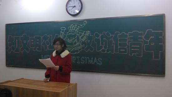 会议结束时,有班长张进燕进行发言,再次强调大家要知文明礼仪做诚信青年。