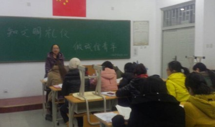 12月18日晚七时,11级护理7班全体同学在班级自习室开展了“知文明礼仪,做诚信青年”主题班会。此次班会由贾敏敏同学主持。