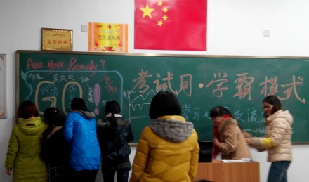 为迎考试月,提高同学们在冲刺期末考试阶段的学习热情,在短时间内掌握有效的学习方法,2013年12月18日晚八点,12级护理五班全体同学在新校区护理大楼209教室开展了以“考试月·学霸模式”为主题的学习心得交流会。辅导员燕鹏老师观摩,宣传委员王晶晶主持班会。