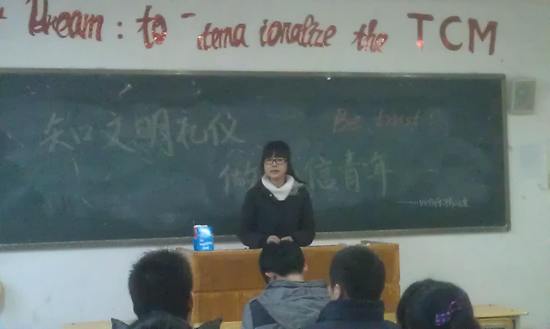 2013年12月17日下午四点半,11级中药临床班在2402教室开展了以“知文明礼仪,做诚信青年”为主题的团日活动。诚实守信是社会主义职业道德建设的重要规范,是所有从业人员在职业生活中应该且必须遵循的行为准则。但近年来不断发生诚信危机,很多不诚信的现象与行为已在大学校园中凸显。作为社会未来的主人,大学生群体应当成为诚信之风的践行者、弘扬者。此次团日活动旨在全面提升班级同学的综合素质,深入推进诚信之风的建设。