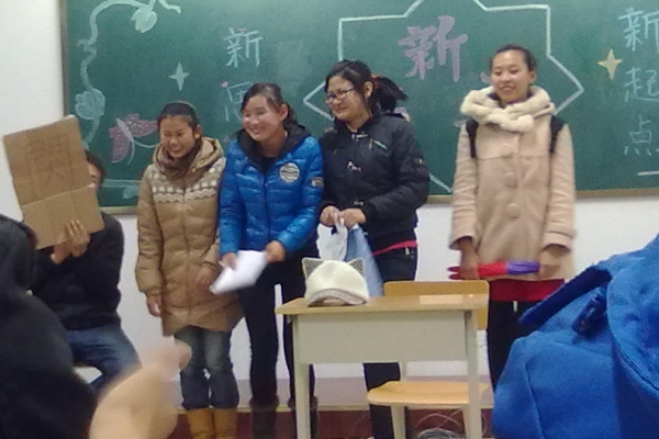 首先班长等六人朗诵了《少年中国说》,展现了当代大学生的风采。紧接着上演了一场有关五四爱国运动的话剧《游行前夕》,同学们表演地极其投入。随后以新思维为主题的小品《招聘》给大家带来了无限的欢笑。此外,高晓宇同学即兴给大家表演了魔术扑克牌,几位同学也纷纷上台演唱。最后全班同学共同参与了“你比我猜,开阔思维”的游戏并共同演唱了《我相信》。