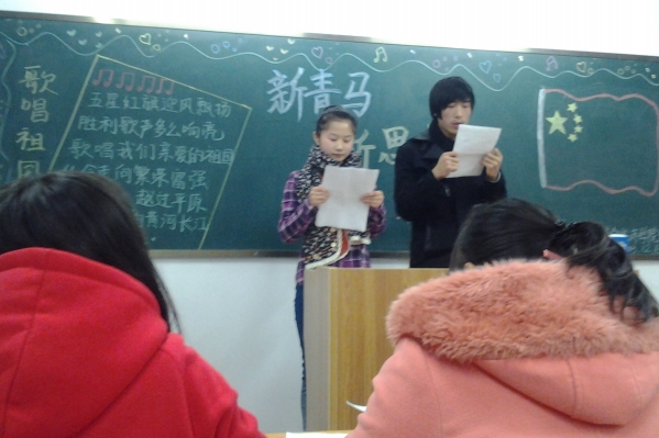 12月15日晚,13级中西五班在412教室举行了“新青马、新思维、新起点”主题班会。辅导员史小竹及全体学生参加了此次班会。
