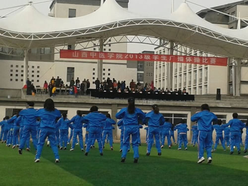 为丰富校园文化生活,提高学生身体素质,培养学生集体主义观念以及吃苦耐劳的顽强意志,展现同学们积极进取、奋发向上的精神风貌,我校于2013年11月24日上午,在新校区运动场隆重举行了“山西中医学院2013级学生广播操比赛”。我校八个二级学院的全体学生参与比赛。出席活动的还有副校长周晓明,各二级学院领导,学生处处长王旭,学工办主任和全体新生辅导员。比赛由学生处副处长张斌任主持。