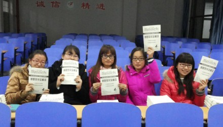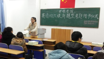 为了提高同学们的学习热情,使他们顺利通过英语四六级考试,2013年11月28日晚上8点,由护理学院学生会主办、医苑书店赞助的英语四六级新题型考题赠书仪式在新校区护理大楼307教室隆重举办。护理学院学生会学习部部长任彦婷主持了本次赠书仪式。