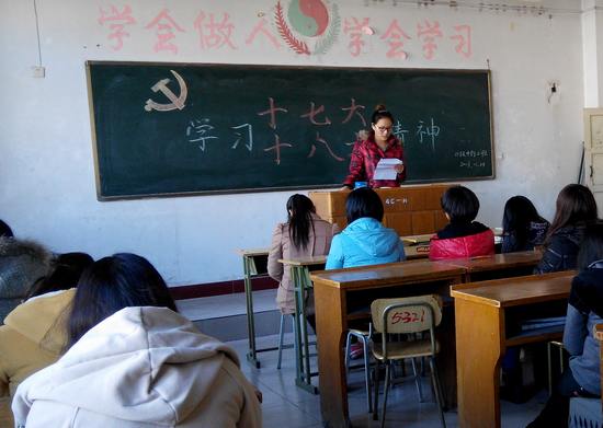 为了深入贯彻团的十七大精神,切实党的十八大精神,学习习近平总书记的重要讲话,2013年11月25日11级中药2班全体同学来到2408教室共同讨论和学习十七大、十八大精神。本次活动由本班班长李岩同学主持。