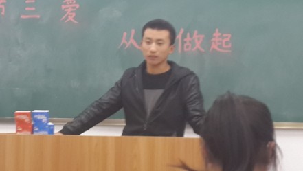 为了学习 “三节”思想,了解宣传“三爱”精神,13级护理4班全体学生于2013年11月21日晚在新校区护理大楼403教室举行了以“学习三爱三节,共建美好校园”为主题的演讲比赛。辅导员侯跃辉老师应邀参加,宣传委员刘星主持活动。