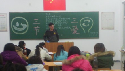 “三节三爱”号召,促进当代大学生树立为响应习近平总书记向全国青少年提出的正确的世界观、人生观和价值观,2013年11月21日晚,11级护理6班全体同学在新校区护理大楼6班小教室开展了以“三节三爱”为主题的班会。辅导员姜弢老师应邀观摩,生活委员刘欢主持此次班会。
