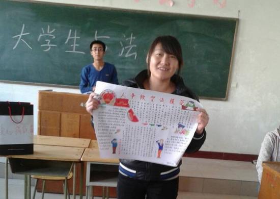接着,到了各团小组展示提前制作的手抄报环节,每组选一名同学从板报的主题和内容等方面介绍,或引经据典,发人深省,或挥毫泼墨,形象生动。正面反面的例子,告诉我们要正确认识法律,争取做一个知法、懂法、守法、遵法的大学生。