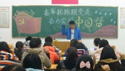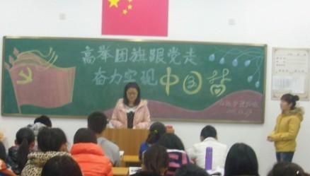 为了使同学们深刻理解党的光荣历史和奋斗历程,肩负起当代青年的历史使命。10月29日晚,12级护理四班在新校区护理大楼208教室举行“高举团旗跟党走,奋力实现中国梦”主题团日活动。此次班会由组织委员曲然同学主持。