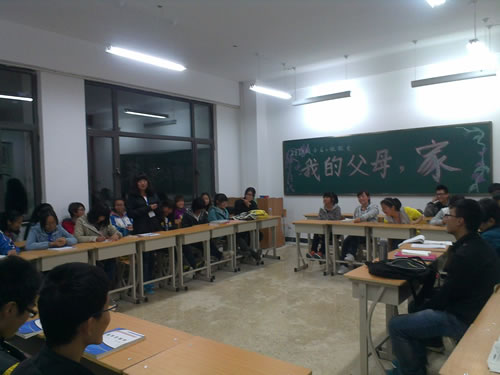 在新生开学之际,为了使同学们更好的了解彼此,增进感情,尽快适应大学生活。10月16日,2013级中医临床4班全体同学在新校区医学楼201教室召开“我的父母,我的家”主题班会。