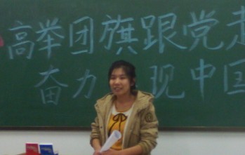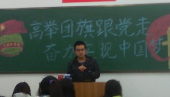 为推动中国共产主义青年团第十七次全国代表大会精神的贯彻落实,贯彻党的十八大报告精神,使广大青年学生务求实效,树立正确的人生观、世界观和价值观。10月29日晚,11级护理6班全体成员在新校区6班小教室召开了关于“高举团旗跟党走 ,奋力实现中国梦”的主题团日活动。班会由班长王渊主持,辅导员姜弢老师应邀参加了此次班会。